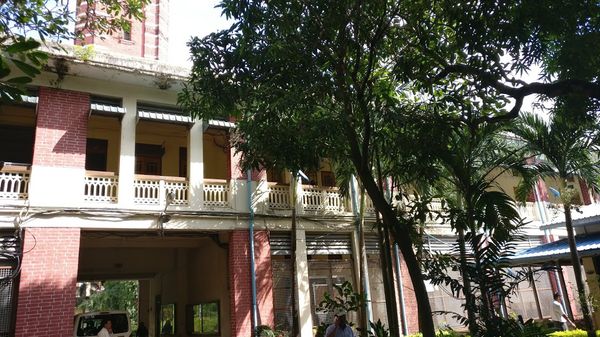 深秋的仰光, 艳阳西斜的一个下午, 我结起沙笼穿上拖鞋, 三步当两步走进母校校园. 抬头一望, 蓝天白云红砖钟楼绘成一景 百年不衰的坐标.