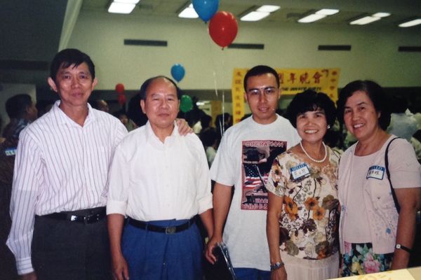 我在南山教书的第一年就是住在黄艳玲家里,我赶紧问她:你妈妈也移民来到美国了吗?她说来了,今晚也来参加晚会,我急忙请她带我过去,一见面,我就亲切地叫她三嫂,並和她擁抱在一起,顷刻间,我情不自禁,两眼热泪盈眶,激动万分,因我在她们家住宿期间就像一家人般相处,黄德庭也是我到南山后最敬佩最感激的一位侨领。他也是南山学校的董事。