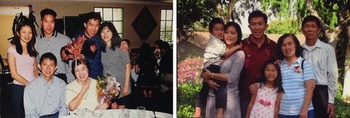 左图:陈万宝劳月姬合家照,右图:陈万宝劳月姬与子孙照
