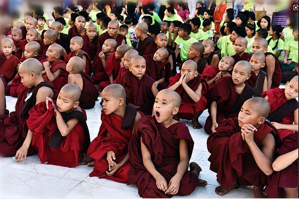 缅甸语文教学的一个独特现象是全国城乡分布有千千万万大小和尚庙,收纳少年食宿,教授缅文和佛经。我本人就是从和尚庙出来的学生。和尚庙担当语文教学的半壁江山,学生的缅文水平比政府学校还高,这也是缅甸国民识字率很高的重要原因。