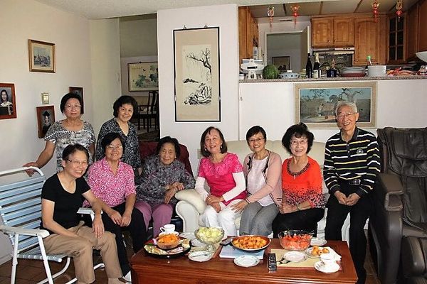 肖碧英来美国时,大家聚集在江丽春老师家品尝美味佳肴和畅谈