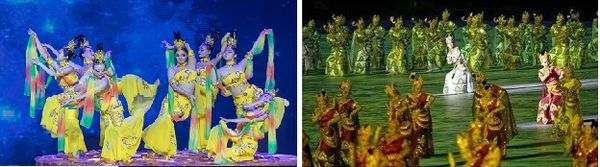 大唐敦煌飞天舞(左)缅甸古代蒲甘舞(右)