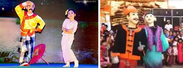 缅甸喜笑舞"宇瑞尤"(左)缅甸滑稽卡动舞(右)