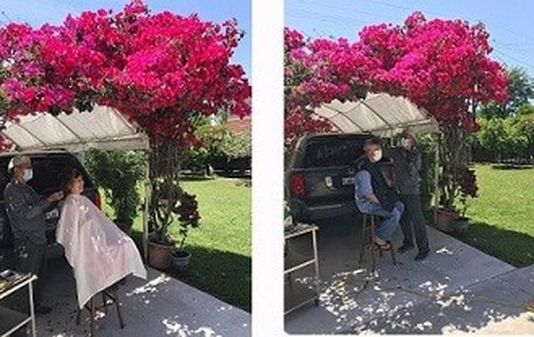 网传理发店等公共场所是传播疫情最危险的地方。一来这一行业未批准重开,二来不敢也不愿去光顾。幸亏弟弟家住对面,他自学的理发术也有两下功夫,家里都有理发工具箱,于是自家的花园发廊开张了。空气新鲜,环境优美,比外面的发廊还优越。
