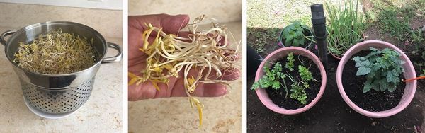疫情期间,尽量居家防范未然,除了必要时才到市场购买粮食,在家里种养一些简单的蔬菜可收到很好的帮补,解决燃眉之需。第一次学发豆芽,效果还可以。青葱和芹菜可用再生的方法培育。可惜没法买到其它菜种,Home Depot 排长龙,计划暂缓。世界不宁,在后园开发蔬菜区是长久之计。
