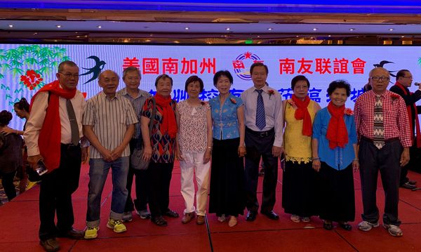进入二十一世纪,2004年,南加州南友会隆重举行十周年庆祝晚会,当时我们虽然家居橙县,踊跃参加,並身着校服参演回眸在校时的集体舞。首次我们旭光班友集体留影。自此以后几乎所有南友活动我们都参加参演,南友活动越来越丰富多彩。两年举行一次周年庆,特别是周年庆增加了敬师活动,我们终于见到了久别半个世纪的敬爱的黄柏松老师和苏春美老师。值得庆幸的是当时两位老师虽然年近八旬,仍然精神抖擞,身体健康,谈笑风生,长像也没有变化多少。