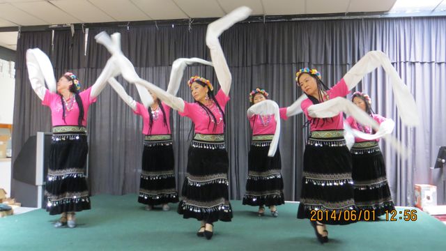 今天的午蹈节目丰富精彩, 由莊玉娇老师, 林碧华, 丘丽琴, 陳幼群四员午将精心排练, 用心设计服装, 亲自领演。先后有缅甸午, 妈妈的爱, 泉水叮咚响, 午夜香吻, 森巴午, 女人花, 夏夜恰恰, 青藏女孩等, 粉飾登台。林碧华领演的缅甸潑水节午开头, 歌声优美, 动作柔软, 缅味十足。莊玉娇老师的森巴午, 丘丽琴的夏夜恰恰, 服装鲜艳, 歌声轻快, 午姿热烈敏捷, 充满拉丁风情。泉水叮咚響, 动作可爱, 服装奇特, 胸前的大蝴蝶十分搶眼, 细细一看, 演員在跳午,蝴蝶在紛飞, 双重效果。陈幼群领演的青藏女孩舞, 歌声动人, 午姿飞扬, 把观众带到美丽的青藏彐山高原。观众目不暇接, 赞叹不止, 充分体现出缅华会文娛節目的多姿多彩。