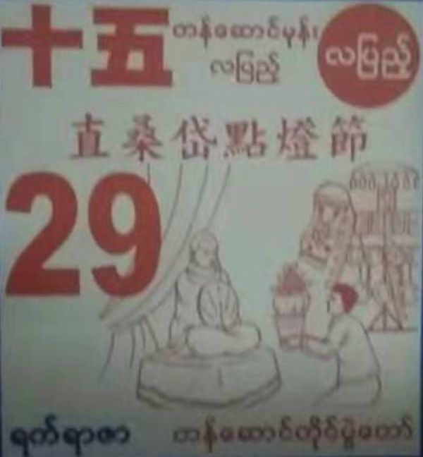 不知读者有否畄意,缅甸有两个重要节庆是凌晨举行的,一是每年的公历1月4日缅甸独立节,于凌晨四点举行升国旗奏国歌庆祝典礼。二是每年缅历八月十五月圆日,"直桑岱"佳节,和尚庙布施"马多"袈裟,于凌晨三点举行。