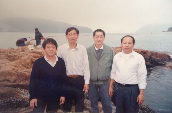 左起:吴传中,林容福,曾福才老师,苏顺路于屯门海滩畄影