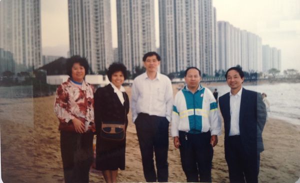 左起:卢丽丽,黄月琴,林容福,苏顺路,张元兴于屯门沙滩畄影