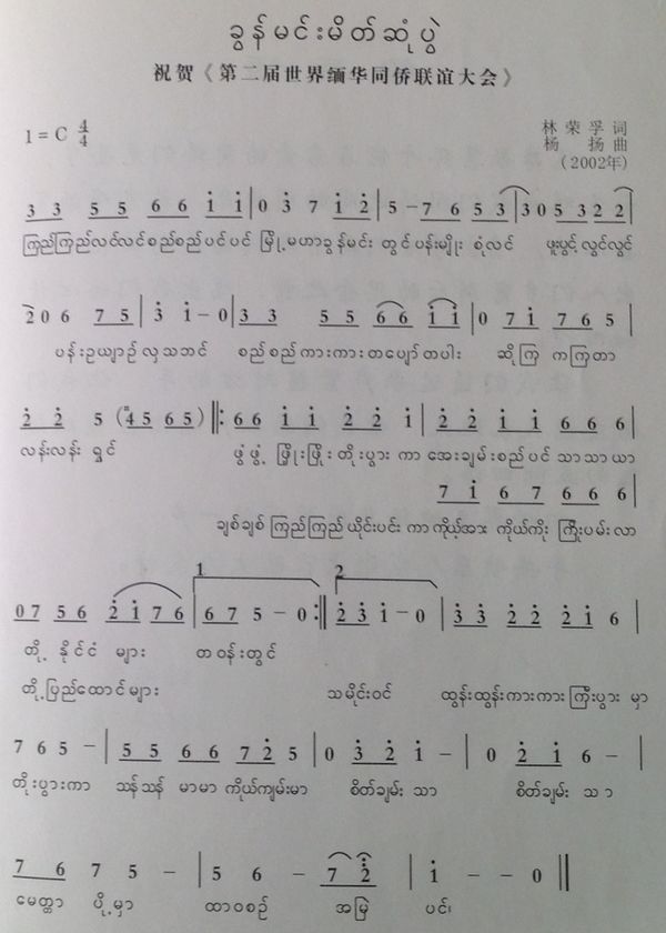 杨双溪老师(杨扬)作曲,林容福(林荣孚)填词缅语歌曲