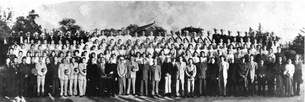 1939 年,华中师生在校舍前合影留念。此图展览于厦门华侨博物馆。