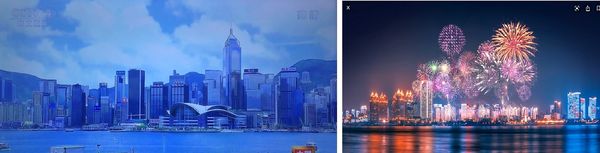 香港冲天高楼林立烟花亮丽