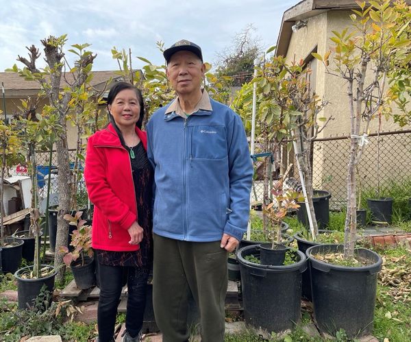 2006年,我们的两个儿子,在洛杉矶阿汉布拉市,集资购买公寓楼,有四个单元,我们由橙县搬来,发现前后均有空地,前面种草,后面荒置。经其他三家同意,我利用闲暇时间,清理了后院狭小荒地。该地由新土堆积,碎石片瓦到处分布深埋,栽种植物,虽然施肥却长不好,没办法,我只好一个坑一个坑将碎石土挖空一尺多深,填入肥料土,脱胎换骨之后,种树效果好了一些。