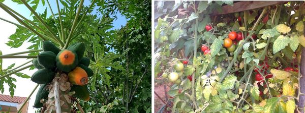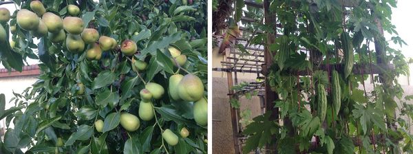 周淑琼是南友周淑屏的胞妹,我们在云南和香港期间,与周淑屏一家亲如兄妹,周淑琼家和我们家只有几分钟车程,我经常去她家参观蔬果园,她家果园长宽只有六、七米,种植瓜果十分密集,她同时施用包装肥料和自制肥料,黑油油,松软软的土壤肥力特佳,种出来的瓜果果实累累,四棵芭蕉同时结果,齐齐丰收,挨屋种的几棵木瓜,果实成串,经常送给我吃,特别是她种的辣木树,一两年即高大参天,一条条绿色果实垂挂树枝,数不胜数。常常送给我吃。