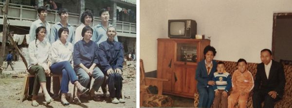 左:陈荣春吴金焕全家福(前排右二吴金焕后排右二陈鸣爱)右:作者合家农场畄影