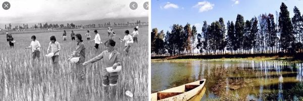 左:华侨农场水稻田 右:华侨农场养鱼塘