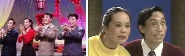 左:1983年第一届春晚主持马季姜昆刘晓庆王景愚 右: 1984年第二届春晚哑剧"电视纠纷"