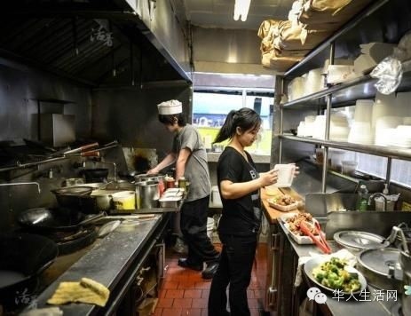 打餐馆工是刚来美国的新移民的首选之路,美国的中餐馆以自助餐为主流,每个自助餐馆的菜类20-50个品种之多,也有上百种的,一般厨房里就要10-20个厨房工左右。其分工大致为打杂、油锅、帮炒、炒锅、大炒锅、老大(大厨),加上前厅里看台。其中打杂是最苦的,又累又受气,主要任务是洗菜、切菜、刷锅、擦地、倒垃圾,反正谁都不干的话都是你干,谁都能指使你,工资也是最低的一种,目前外州可以赚到1800/月美元左右,加州之内也就是1500美元左右。等干一段时间之后,慢慢的对厨房的工作熟悉了,就提拔成油锅了,油锅就是把各种需要过油的食品放在油槽子里煎炸,通常两只胳膊总是左一块右一块被热油烫伤的疤痕,工资通常2000-2200美元/月。帮炒,顾名思义就是帮助炒锅炒菜,是炒锅里最低的一等,工资一般2400-2600美元/月左右。炒锅的工资是2800美元/月,大炒锅(或叫主抄)一般不忙的时候是不干活的,或者是抄那些稍微有点难度的东西,很多地方不设老大,那么大炒就相当于老大了,3000-3200是很正常的收入。至于老大,一般的店都是老板自己,有的老板同时开几个店,也有外请老大的,一般都是后厨承包的,工资都包在里面了。