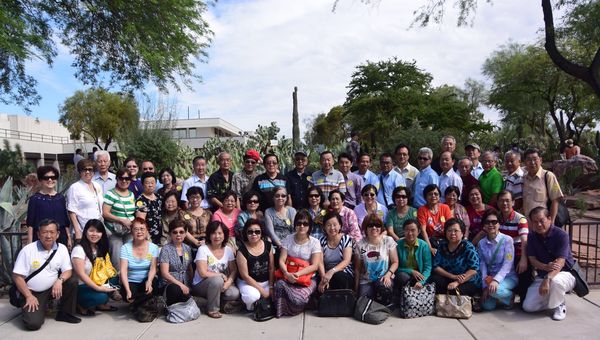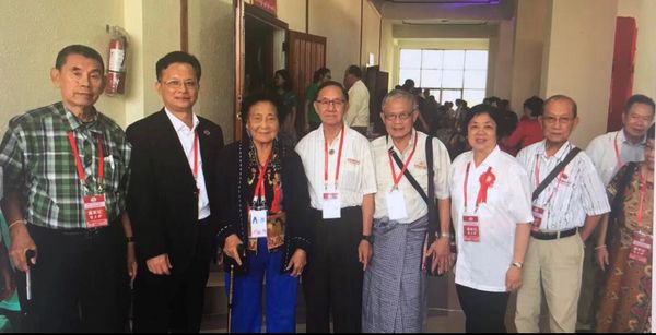 紧接着谢师母北上曼德勒参加第九届世界缅华同侨联谊大会,大会三天三夜连续开展多项活动,谢师母从头到尾积极参加,一个不漏,特别是亮相歌咏队,令人佩服。由于谢师母不远万里,前来出席,使我们代表团增添了光彩。第一,所有出席大会的外地代表团中,我们美国缅华代表团行程最远(飞行24小时)。第二,我们人数最多(五十人)。第三,我们年岁最高(谢师母九十高龄)。