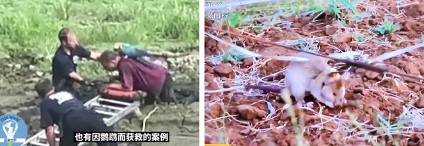 左:鹦鹉救人,右:非洲地鼠扫除地雷