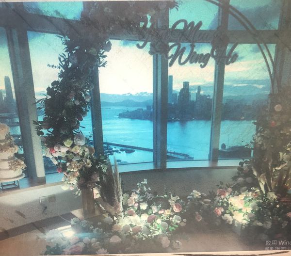 2021年4月下旬,趁着政府的“限聚令”有所松绑,允许婚宴可以20人出席的措施,我们高兴地告诉双方的家长:我们找到港岛的一家酒店顶楼上下层可以容纳20人以上的席位,同时愿意在下层布置婚礼台,让亲友们拍照留念。