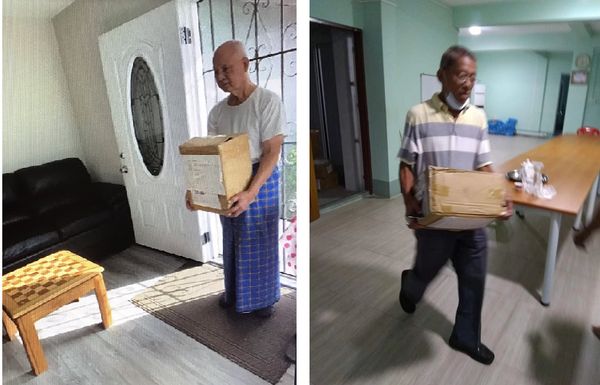 左:10/14/2021特刊送到洛杉矶张少战会长家,右:11/20/2021特刊送到仰光华友会,雷啓泉主席搬运