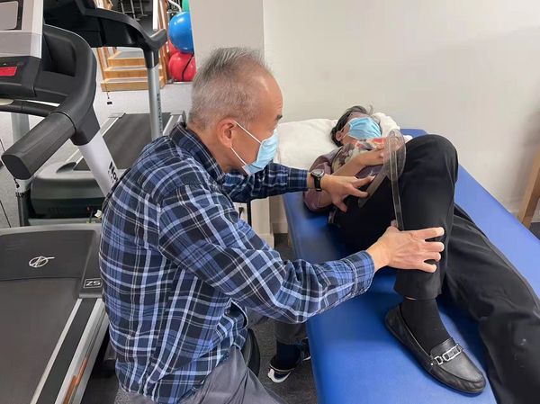 物理治疗师洪子圣医生给我做膝关节按摩