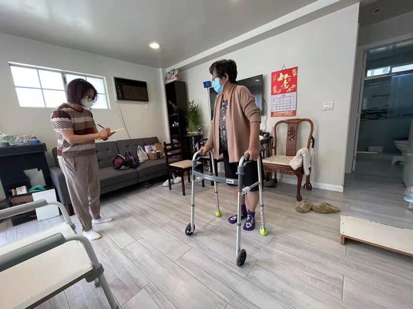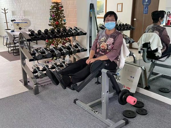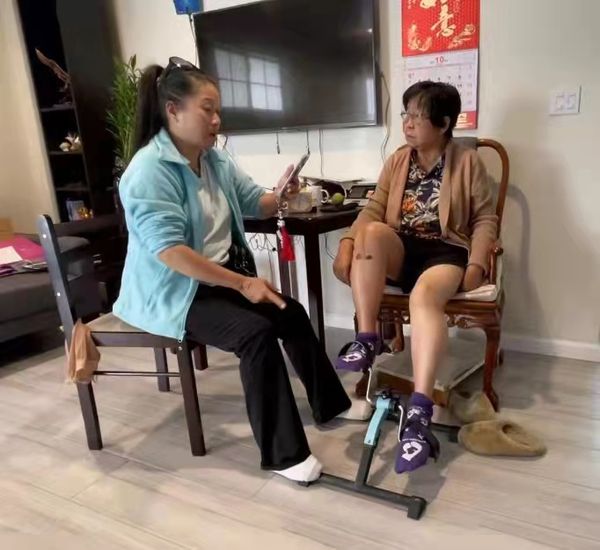 我的家庭医师王勇也非常关心我手术后的功能训练,为我安排在家康复锻练。有一位特别护士来查看我手术后的状况,另外,又有一位物理治疗师来帮我做术后的膝关节复健,教我做各种膝关节的运动。她们每周来两次。在家复健三周以后,我们才开始到物理治疗中心继续做复健。