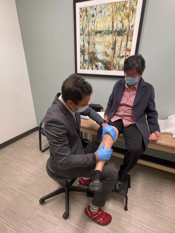 在物理治疗中心(Turning Point Physical Therapy)洪子圣物理治疗师指导下,进行科学锻练,展开关节功能训练,其关系到我的膝关节今后功能和活动度状态,恢复膝关节的伸屈活动,由于洪医师的细心、认真的帮助我手术后的康复训练,使我的膝关节神速的恢复。