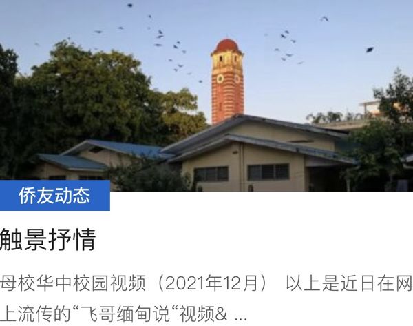 2021年10月开始,随着仰光华中建校百年纪念特刊"百年华中情"的问世,飞速传送到全球华中校友们的手里,掀起一鼓前所未有的华中热潮,缅华网上先后出现了近十种华中情诗词联唱,接龙游戏,参加投稿的校友来之五湖四海,个个热情奔放。更特别的是"百年华中情"传到了国内常驻仰光的记者飞哥手里,他特地约老校友前往华中校园实地参访,向各媒体做了报道,引起极大反响,洛城华友会迅速开展接龙游戏,我网第一时间收集刊登,效果极佳。