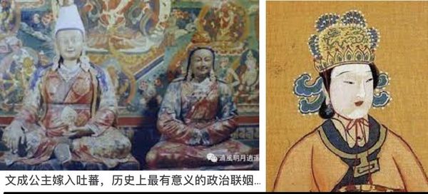 左: 西藏文成公主, 右:中国唐代女皇武则天