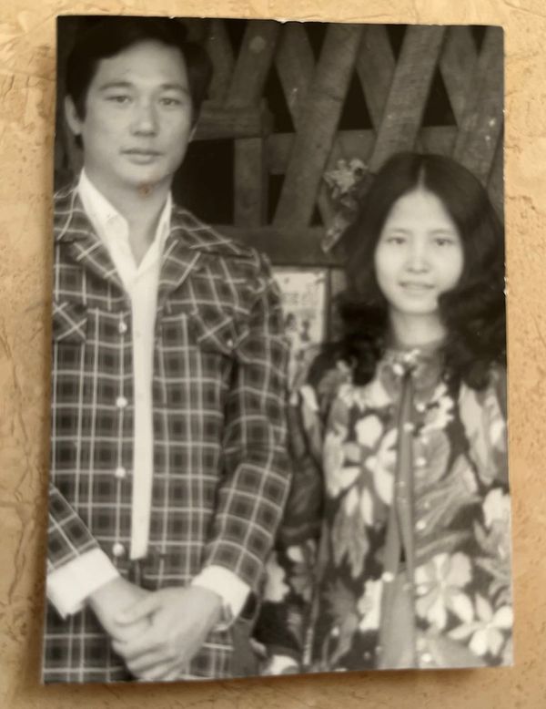 作者朱池山(又名朱素山)和太太熊燕霞摄于小镇当铺前,1978年冬季。