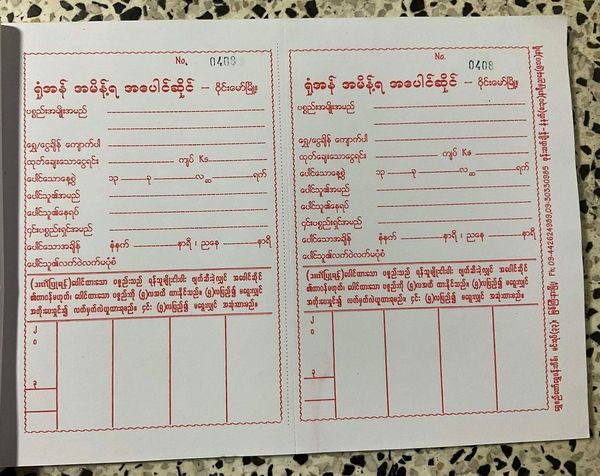 2022年的当票,全部用缅文了,因为缅甸社会都用缅文,人民不懂华文,而且不放华文在当票内,不会产生缅甸民族的反感。大家和睦相处。(湾莫当铺锺宝霞掌柜(总经理)提供。)