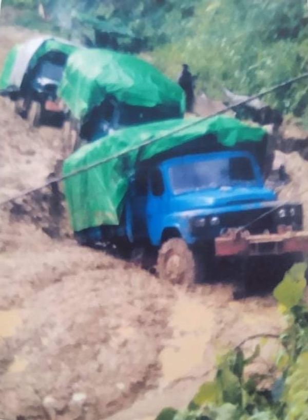 到70-80年代,缅北地区,大型卡车运输,多数是缅北华人经营。我们经常也帮军区司令做一些运输工作。所以,军区司令就选我为运输队长。所以常常被军方征招送物资去边区。那时少数民族武装部队常常和缅甸政府军激战,多数是伏击战,武装部队开几枪后就退出战场。缅北地区的公路都不平静,桥梁都被炸坏了,每年冬天(干季)缅政府都会组织运输队,送粮,军需物资,民用生活物资等到史迪威公路的一个大县城(德奈市)。经常叛军埋伏在公路两边,军方运输车来时就开始战斗,以我的经验,如果第一枪打不中的话就算是捡回性命了。听到枪炮声时就停住车,第一时间跳下车躲在车轮边,多次没有受伤,所以我的人生中也对战争越来越有经验,后来缅军人也掌握战场经验,在时常发生伏击的地方前一公里,全部军人下车,沿着公路两旁走过去,看到有人,还是有草摇动的地方就用自动步枪扫射,叛军就自动撤退。叛军常常在公路两旁埋下地雷进行伏击战,挑伕被子弹打中或是踩地雷身亡。也造成人亡车翻覆的事故。军方也常常到叛军驻地去扫荡, 征召一百多辆卡车和挑伕,我们平民的运输队Convoy都会安排在最前排,中间才是军方汽车,司机们都身经百战,知道怎样去躲避子弹,也告诉家人为了生活,在运输途中随时都会遭遇战争。大家都分享躲避子弹的经验,所以,很少司机被子弹打中。在运输途中,军方的消息也非常灵通,有时候,刚好到预定休息的地方,但是收到重大消息后,连夜快速离开也经常发生。途中常常发生战事,差不多,每一趟都要打四五场伏击战,才能到达,德奈县。有时候溪水暴涨,汽车没法过去,大家就在原地过夜,我们车伕都睡在汽车底部,军人都轮流守夜,给我们充足睡眠,第二天可以有精神开车。为了防止蚊虫咬,大家都用布包住全身而睡,有时候,蚊虫太多,喝醉之后,才能入睡,吃饭时,也是自己带一袋米和一罐腐乳(辣豆腐)拌饭。喝小溪水。一直将物资和粮食送到边疆,才能完成运输责任。常常出门后,一个多月,还是三个月才能回到家。目前公路用柏油铺设,当天就可以从密支那到德奈县。