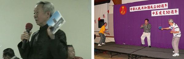 图左:2007年叶大哥介绍《我们的故事》,图右:小球传友谊,庆祝中美建交30周年