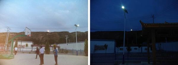全村路灯都是太阳能供电,入夜它即自动照明。月盈之夜,日(灯)月争辉,国家退耕还林政策,堪比日月!