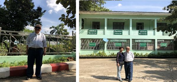 第一站去了南洋中学,学校已变为缅语学校,可能是因为星期六的原因,并未在校园里见到什么人。老爸兴奋地指着高处的房子,告诉我们那是当时的学生宿舍和教师宿舍。顺坡而上,看到二层楼房,记忆里那是用学生们违反校规说了外语被罚款而盖成的.仰望高高的椰子树,唱着南洋中学校歌,老爸沉浸在深深的回忆中。
