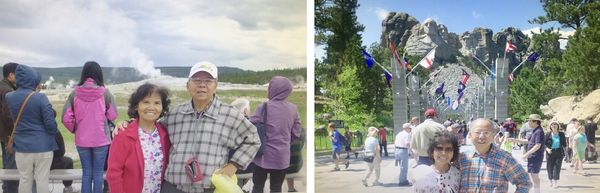 2014年6月24日洛杉矶华友组团美国内地游,七天六夜,行程三千多英里,跨越9个州,参观黄石公园、奇山异石,土堆热泉,总统巨石雕塑、赌城拉斯维加斯等,亲眼目睹各种自然景观,增添许多新的知识。