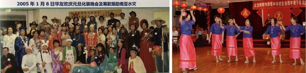 2005年4月洛机矶华中校友参加北加州华中校友会春节周年庆联欢晚会并带上由朱雪璋、陈启玲、黄月梅、黄月琴、梁瑛金、黄娟娟表演的缅甸舞蹈"老鹰抓小鸡"。(百年华中情P114 P115有刊登)