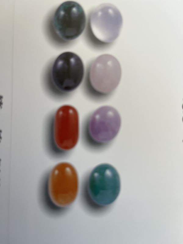 蓝绿翠,蓝水绿,水绿(内有黄色),水豆绿,豆绿,巴蕉绿,黑绿(深蓝成黑),猫眼,黑玉(墨玉),春色玉(紫色)。