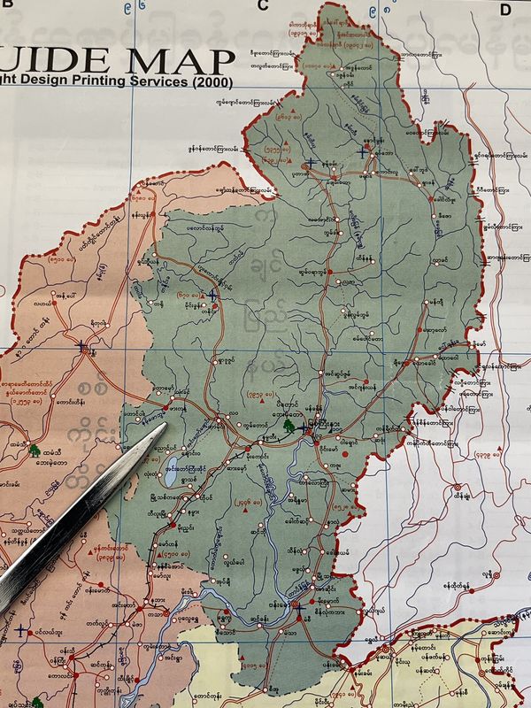 缅甸北部克钦邦(绿色)地图,翡翠产地于克钦邦的西南部