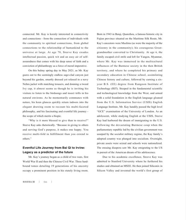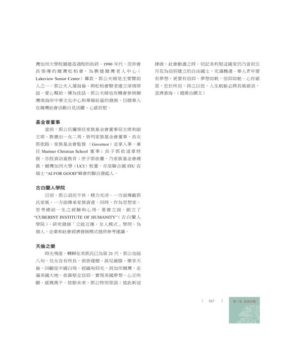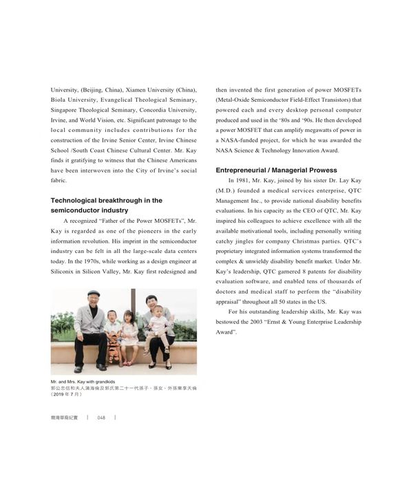 2. 郭忠信先生在 尔湾建市50周年纪念书籍 “ 尔湾华裔纪实” 上面发表的英文文章。