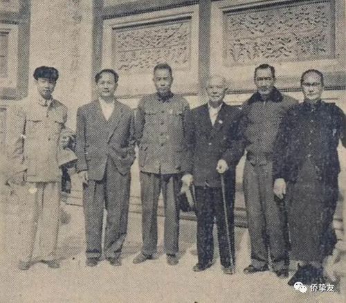 1951年6月徐四民(前排左一)为团长的第二批缅甸华侨回国观光团结束在北京参加五一节庆典后回到厦门,在陈嘉庚(前排中)带领下参观集美学村