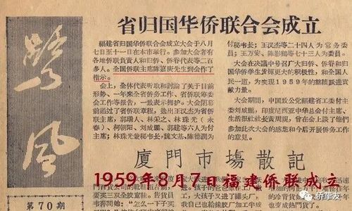 1959年8月7日福建侨联成立,全国侨联主席陈嘉庚到会作指示