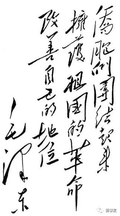 一九四九年十月一日,毛泽东主席为海外侨胞题词:侨胞们团结起来,拥护祖国的革命,改善自己的地位