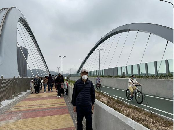 2023年乘着新春假期,我们一家人盛装打扮,由屯门乘坐西鉄到钻石山站,再转乘地鈇直到调景岭站。按地铁内的指示牌找到“将军澳跨湾大桥”最近的出口,展开轻松愉快的步履,计划用2小时的时间步行一万步,亲身踏足,由将军澳跨湾连接路起步,向“日出康城”方向漫步前行。