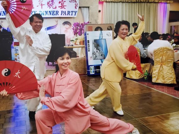 小草自上初中以来,一直是南洋中学的学生,比较了解南友会的点滴事情。由粟福.祥老师,陈先施老师,尹利胜老师,白玉翔老师,叶英华学姐,许秉正学长黎天宝学长……等罒处奔走联系各校友。于一九九四年成立南加州南洋中学校友会,而后简称为南友会。林碧华校友能歌善舞,带领校友们唱唱歌,跳跳集体舞。在会长许秉正学长的支持下,于二0一0年组建健身班,由黄蔚民先生传授大家打二十四简易太极誊,而后由张少应接手。二0一二年经陈秀梅学姐居中联系邀请雷倩美老师来健身班传授并纠正我们打太极拳的手法,口令与步伐。雷倩美老师自幼酷爱武术,师承武术大师,精通各门武术,为弘扬中华文化不遗余力。她不辞辛劳,义务传授二十四式简易太极拳,八式太极拳,十六式太极拳,四十八式太极拳,五十二式功夫扇,太极莲花扇,八缎锦,八法五步。十多年来如一日兢兢业业,谆谆教导,不求回报,精神可嘉。