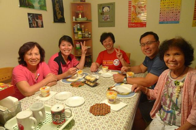左起汤琼秀, 陈玲玲, 林水雯, 苏超群, 黄月琴一起吃宵夜