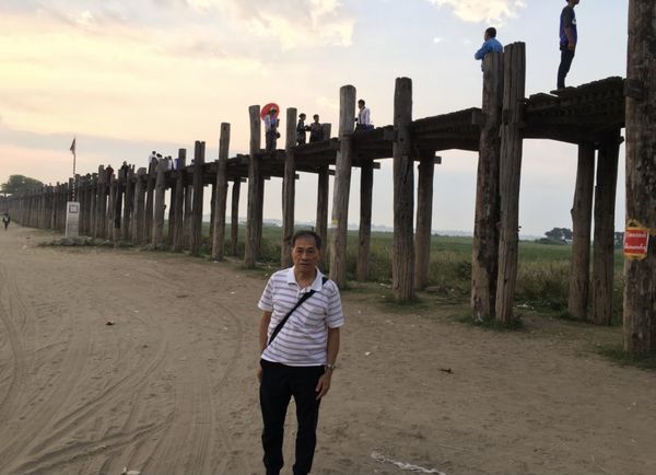 三月八日晚我们乘坐由仰光开往曼德勒的豪华长途夜车,于九日早晨七点左右抵达曼德勒长途汽车站。因时间倘早,的士司机介绍我们顺路参覌了曼德勒世界著名的千年不朽柚木桥——乌木桥。